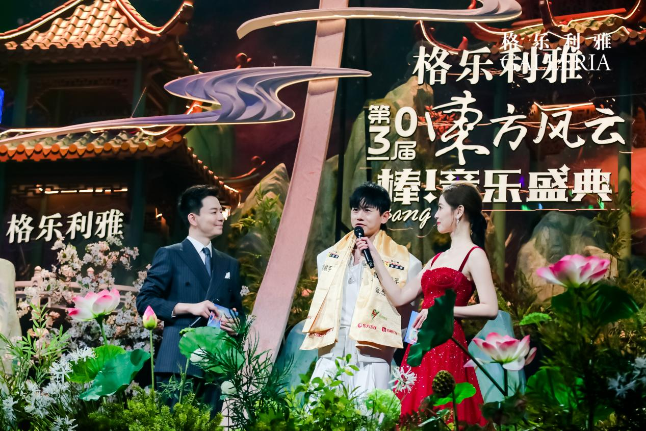 艺人张杰在格乐利雅·第30届东方风云榜音乐盛典<宋·水上汴京>颁奖舞台