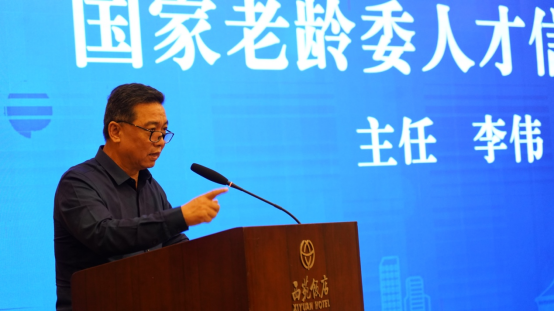 国家老龄委人才信息中心主任李伟作了“健康老龄化系列政策落地实施”为主题的报告。