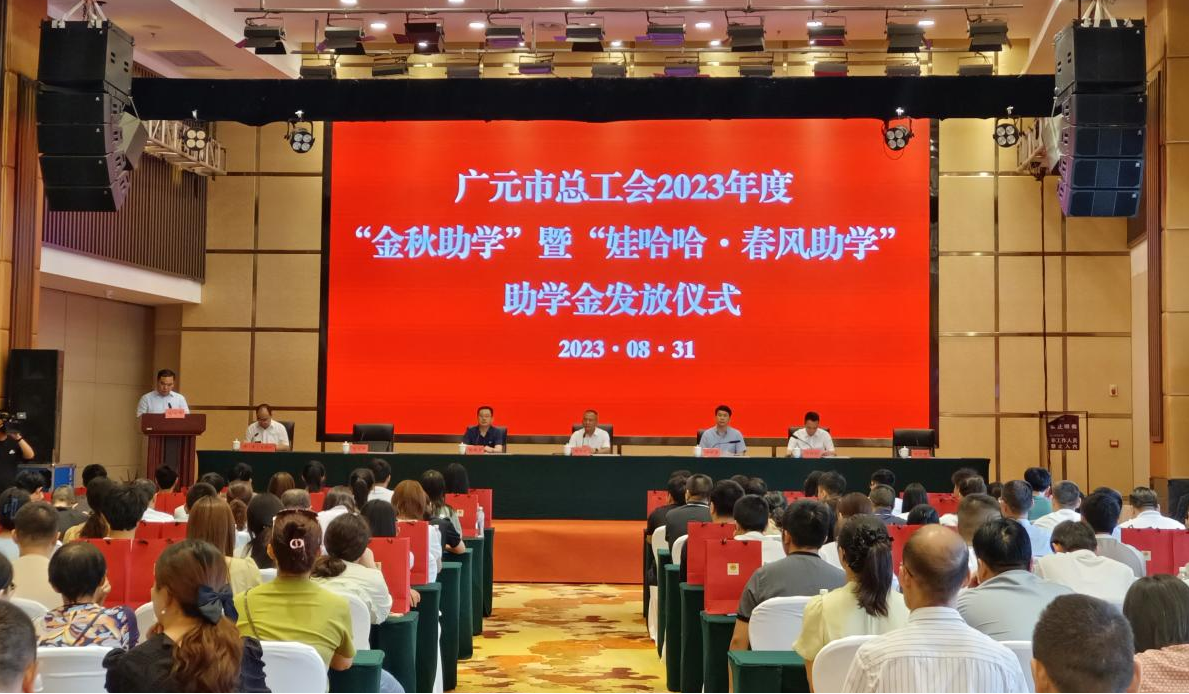 8月31日,广元市总工会2023年“金秋助学”暨“娃哈哈·春风助学”助学金发放仪式在广元市教育局举行,广元市委常委、统战部部长、总工会主席陈正永,广元市总工会党组书记、常务副主席邓勇,广元市总工会党组成员、副主席王文明,杭州市总工会保障部副部长汤泽勇等参加发放仪式,娃哈哈集团西南片区总经理张国勇代表娃哈哈企业向广元“金秋助学”捐助240万元。