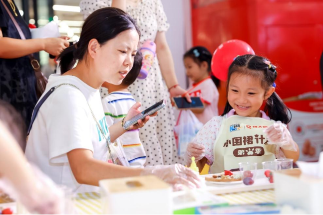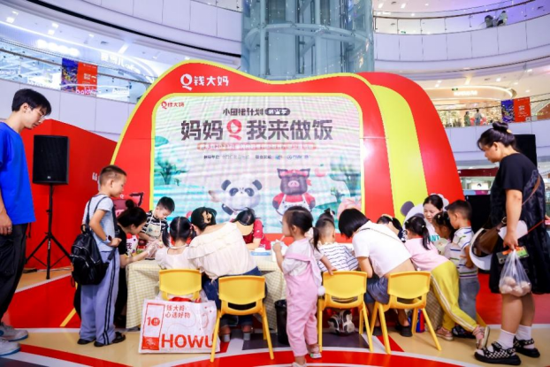 9月16日-17日,由钱大妈联合新华网、万达广场共同发起的“妈妈Q我来做饭”快闪活动正式登陆武汉。现场的小朋友们纷纷系上小围裙,与人气IP玩偶小猪黑毛和熊猫能能一起在劳动中发现生活的美好,体会劳动带来的快乐。