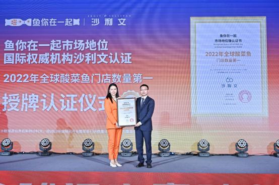 “鱼你在一起”创始人魏彤上台领取2022年全球酸菜鱼门店数量第一确认证书