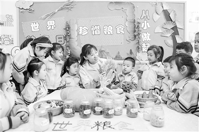 16日是“世界粮食日”,山东省青岛市李沧区新时代文明实践中心联合李沧区青峰路幼儿园开展以“节约粮食 从小做起”为主题的教育活动。(记者宋迎迎 通讯员张鹰)