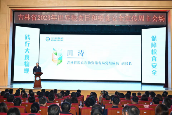 10月16日,吉林省2023年世界粮食日和粮食安全宣传周主会场活动在吉林农业科技学院举办。活动由吉林省粮食和物资储备局、吉林省农业农村厅、吉林省教育厅、吉林省科学技术厅、吉林省妇女联合会共同主办,吉林农业科技学院、吉林市粮食和物资储备局、吉林市农业农村局、吉林市教育局、吉林市科学技术局、吉林市妇女联合会共同承办,省粮食和物资储备局党组成员、副局长田涛出席活动并讲话。