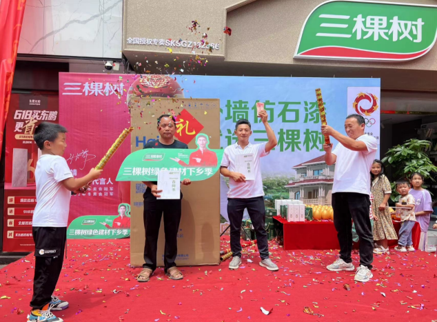 其中,涂料头部品牌三棵树,作为绿色建材下乡活动的积极参与者,凭借其扎实的绿色发展理念和卓越的实践成果,为美丽乡村建设贡献绿色力量,成为了一众企业学习的绿色标杆。