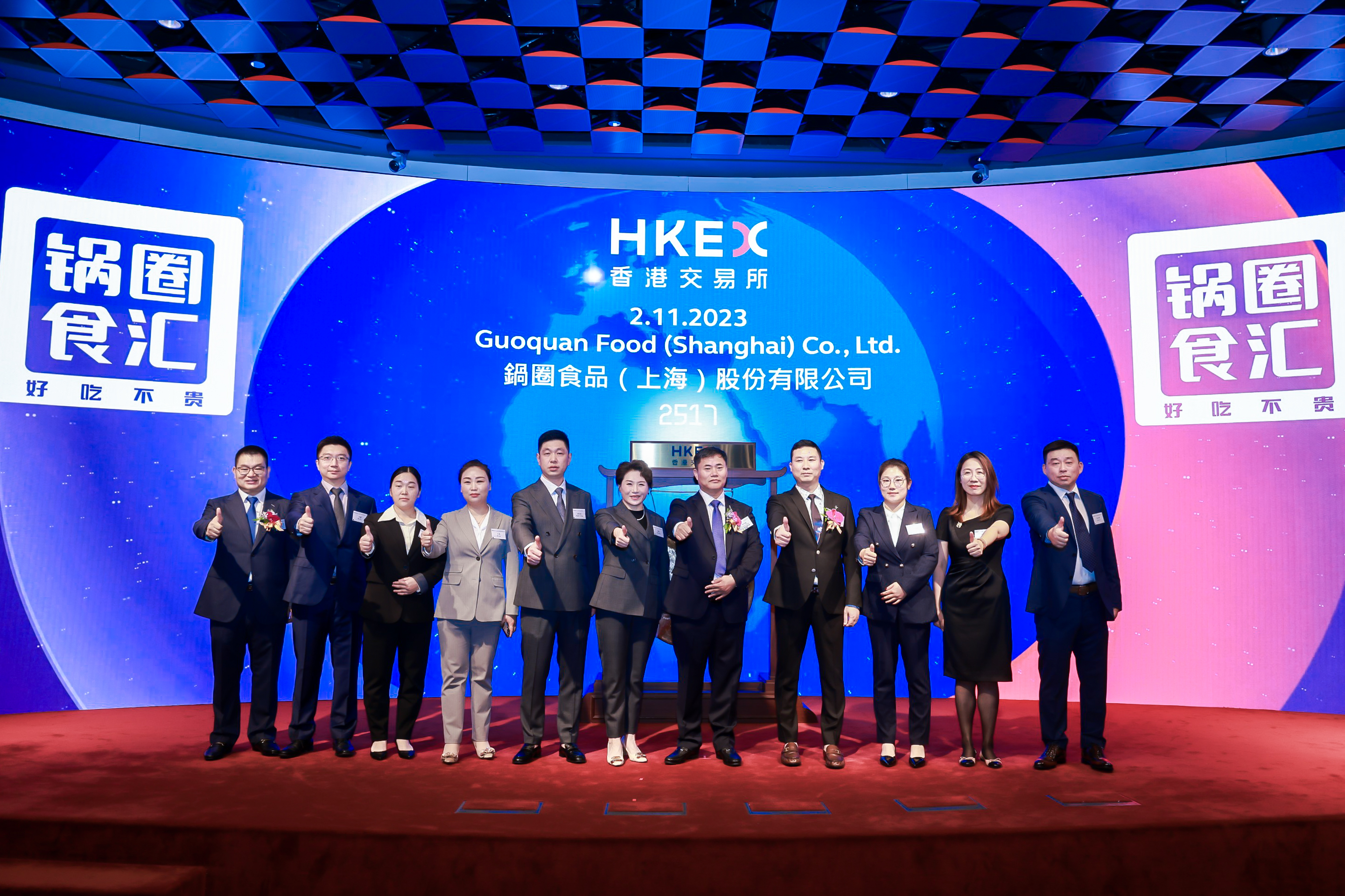 11月2日上午,锅圈食品正式在香港联合交易所主板挂牌上市,股份代号为2517.HK。
