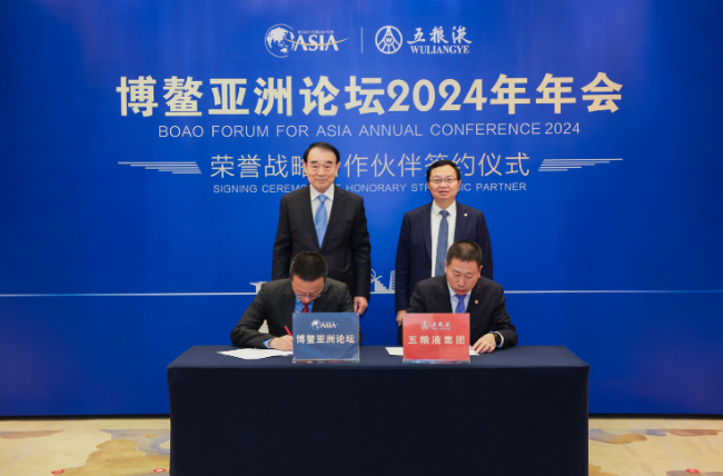 12月17日,博鳌亚洲论坛与五粮液集团2024年年会荣誉战略合作伙伴签约仪式在四川宜宾举行。五粮液集团持续保持与博鳌亚洲论坛的最高级别合作,成为“博鳌亚洲论坛2024年年会荣誉战略合作伙伴”“博鳌亚洲论坛2024年年会指定用酒”。