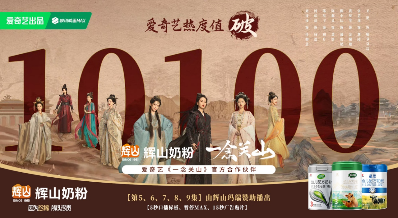 一个奶粉品牌保持长久不衰的秘诀,很大程度上在于是否拥有与新生代用户深度对话的能力。以三大明星产品为支点,辉山奶粉在2023年升级品牌营销战略,开启双代言人模式,拉进与新生代母婴群体的距离;合作的女性励志剧《女士的品格》在湖南卫视和芒果TV双平台播出,该剧开播以来便蝉联卫视收视冠军,收视率持续破2%,狂揽全网热搜700余个;2023年末,先后押宝爱奇艺《宁安如梦》《一念关山》两部大热剧,投放形式上选择“品牌代言人5秒口播、暂停MAX、15秒广告贴片”形式,锁定用户看剧全链路,“辉山奶粉助力男女主云养娃”等话题成功实现品牌破圈传播,精准人群曝光达13.82亿次。