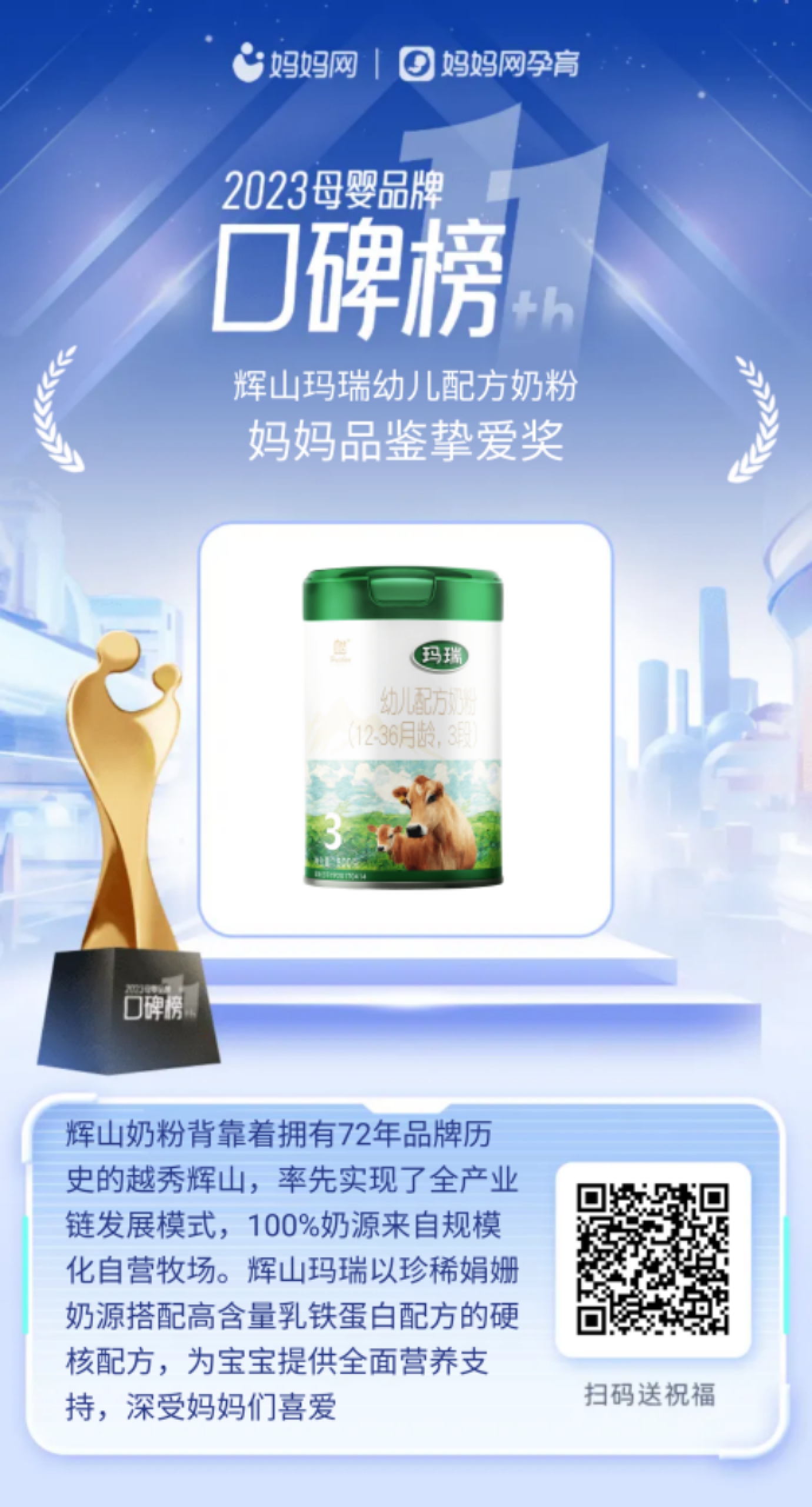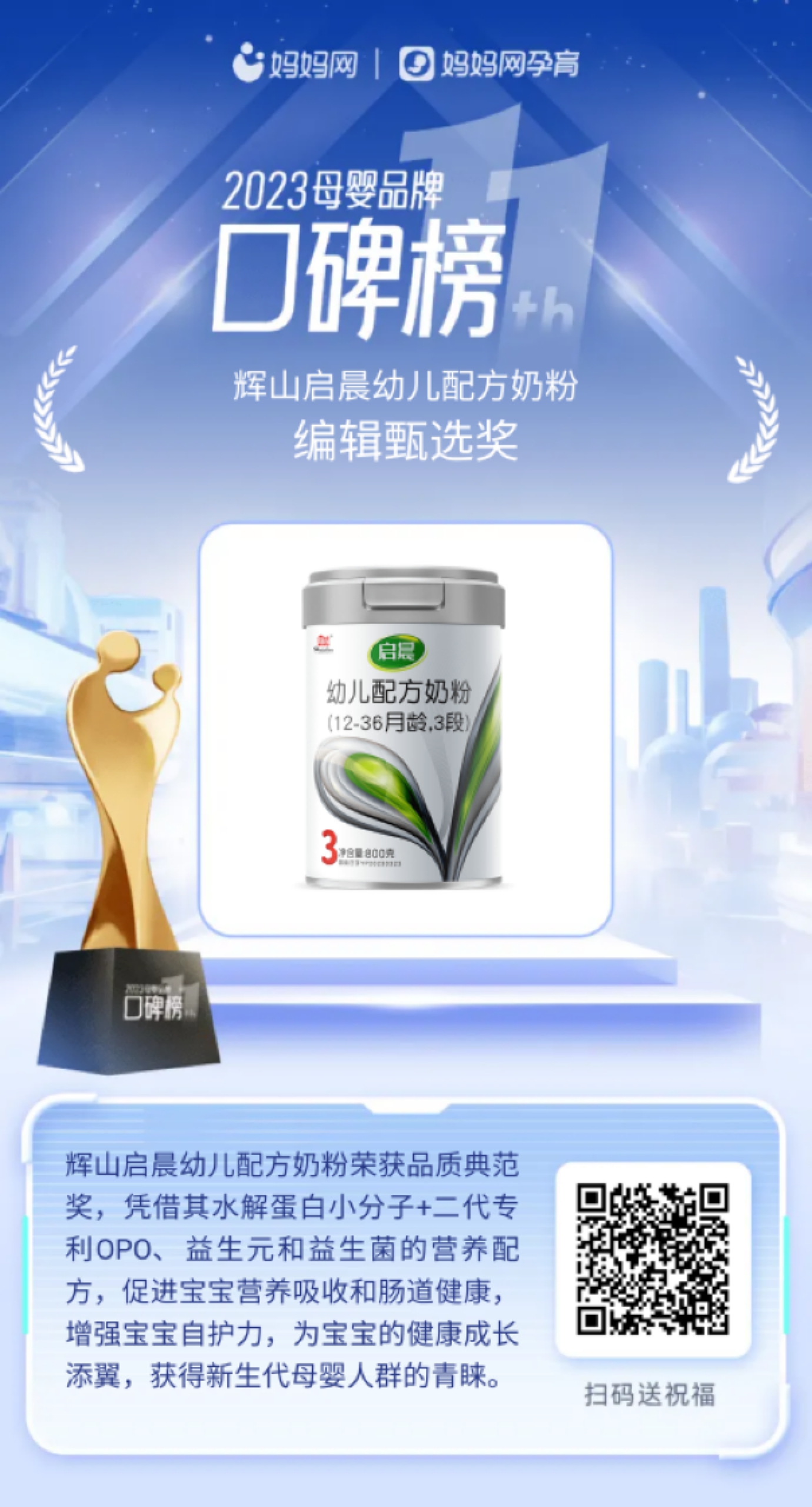 同年9月,辉山旗下三款婴配粉凭借品质和营养双重硬核实力,斩获ITI国际美味奖二星级奖章,珍稀奶源品质获得了国际权威认可。12月,辉山玛瑞获妈妈网母婴口碑榜-妈妈品鉴挚爱奖,辉山启晨获编辑甄选奖,以卓越品质与硬核实力再获消费者和母婴权威媒体口碑认可。