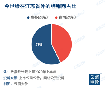 聚焦今世缘在江苏省外的渠道布局,2023上半年,今世缘经销商共有1046家,其中省外经销商596家,占比57%。同时,今世缘省外拓展主要机会或为人口流动所带来的区域名酒全国化,即走出江苏省的江苏人还会喝今世缘。