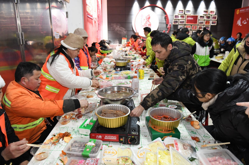 天气虽寒,人心温暖。1月24日,湖南长沙市雨花区黎托街道工会联合会与锅圈食汇组织新就业劳动者,在沙湾公园“红色驿站”开展了“融冰雪之寒 吃暖心火锅”的主题公益活动,向大雪寒天一直奋斗在一线的环卫工人、外卖小哥、社区基层工作者表达感谢,为辛勤工作的他们送去温暖。