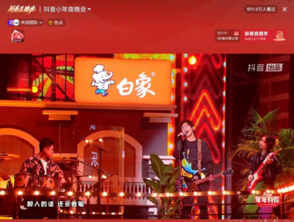 同时,白象还冠名了2月2日举行的抖音小年夜晚会,深度参与这场“年度狂欢”。白象延续着此前与年轻人之间的零距离链接,与年轻消费者玩在一起,不断实现品牌的破圈与重构。