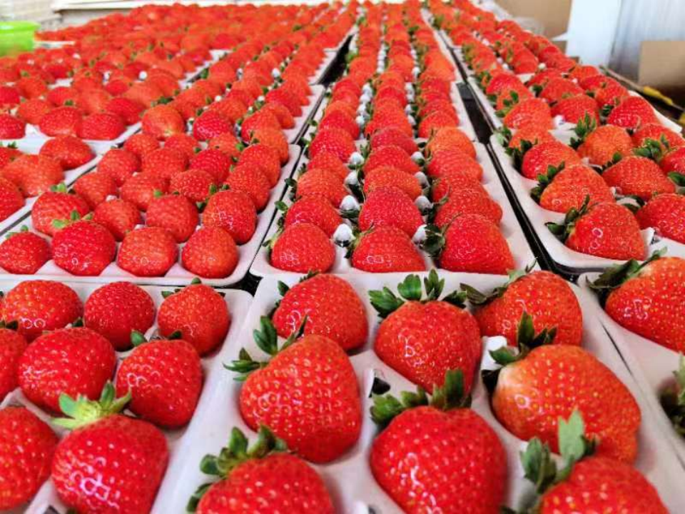 “合作社提供草莓的产前、产中、产后‘一条龙’服务。产前帮种植农户提供优质种苗;产中技术指导、病虫毒害绿色防控、果品标准化管理;产后统一销售,并进行植株残体无害化处理等服务,形成了完整的产业链。”崔天鋆介绍。