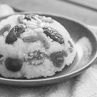 还有一种同样以糯米制成的经典应节甜食,就是八宝饭。“八”在国人的认知里,向来是一个吉利的数字,传达着渴望富足、好运的心愿。至于八宝饭究竟要用哪八种食材,其实并没有全国统一的定论,但一般少不了莲子、红枣、薏仁米、青红丝果脯等,多数是甜味食材,也各自被赋予了意头说法,像莲子寓意“早生贵子”“婚姻和谐”,薏仁代表“长寿”“高洁”,青红丝表示“祝福”“喜庆”等。