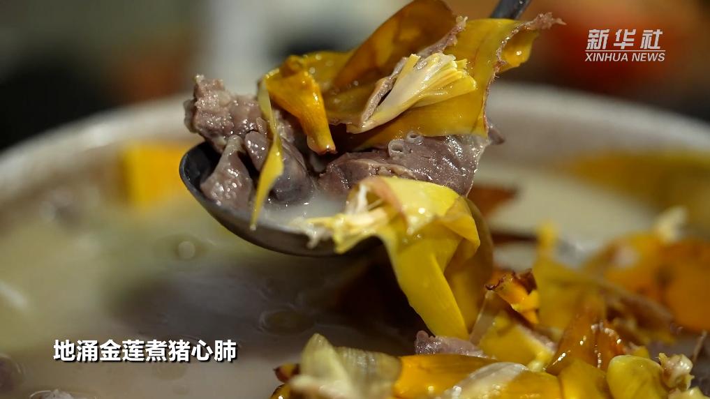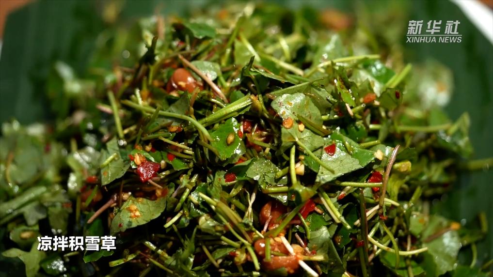 棠梨花圆子、棕树花炒鱼子、地涌金莲煮猪心肺、芦子煮鸡、白花炒豆豉、刺头菜炒腊肉、桑葚花炒鸡蛋、凉拌积雪草、舂酸苞花、芭蕉花炒腊肉……一道道别具风味的春菜清香扑鼻,春天的味道触手可及。