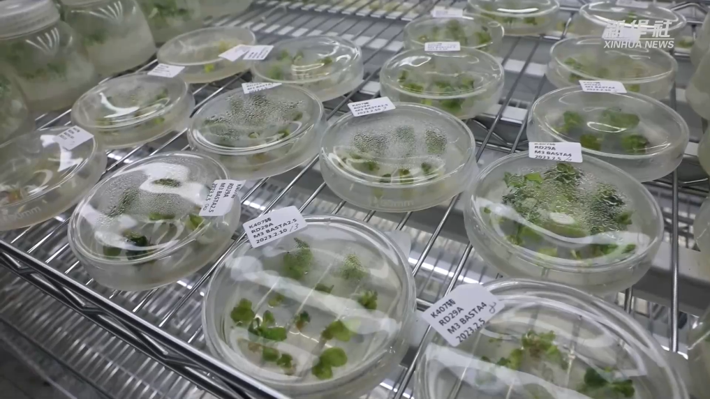 在陕西省杂交油菜研究中心试验田里,矮杆密植杂交油菜籽粒饱满、长势正旺。科研人员借助温室加代育种技术,操控滴灌、水肥一体、补光等栽培设备,为油菜作物提供优良生长环境。