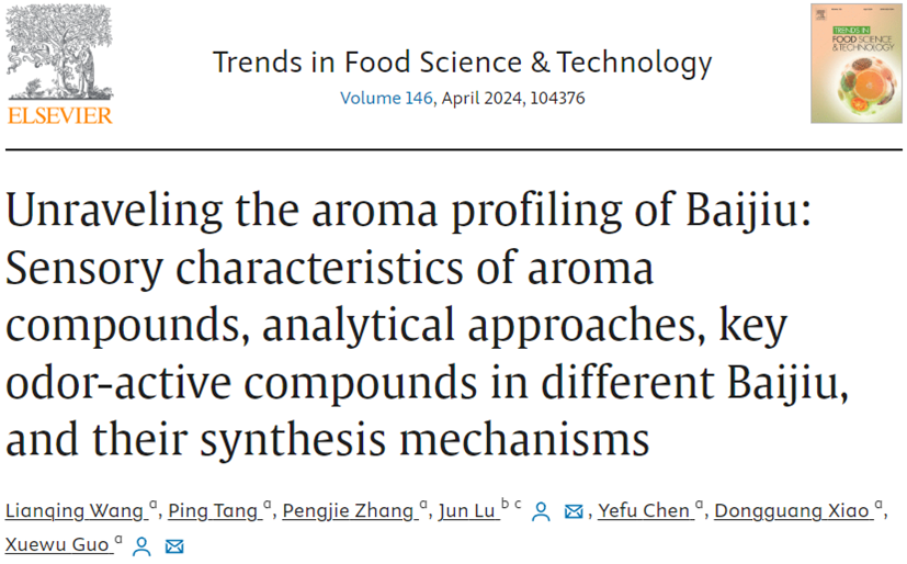 2024年2月17日,天津科技大学郭学武教授团队和国台酒业集团共同在国际食品顶级期刊《Trends in Food Science & Technology》发表题为“白酒中的气味活性化合物研究进展”的综述性论文。