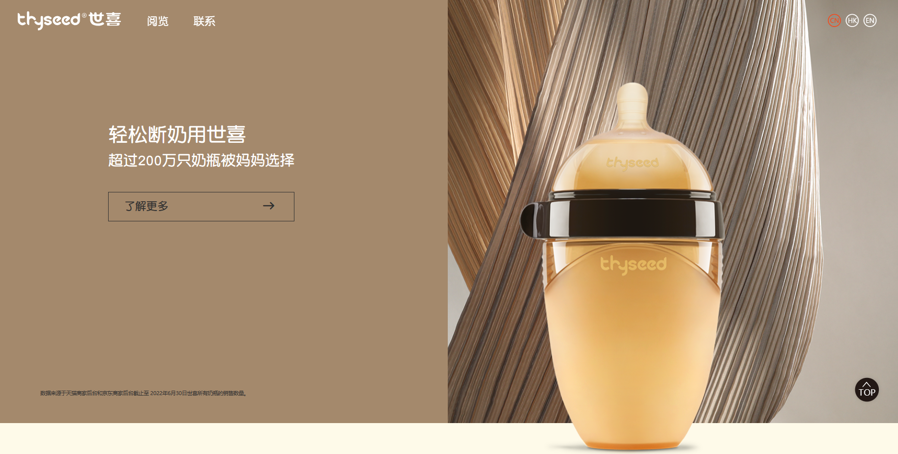 “世喜断奶奶瓶”官网。 网页截图