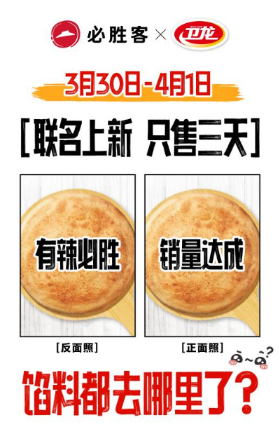 纵观本次联名营销的链路不难看出,卫龙与必胜客的节日限定推新动作不仅有完备的“预谋”,通过有节奏的卡点传播,更展现了两大成熟品牌之间默契的传播“组合拳”。
