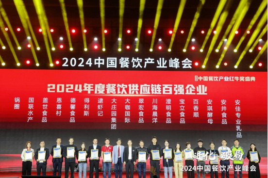 现场公布了“2024年度餐饮供应链百强企业”“2024年度餐饮产业影响力企业”“2024年度餐饮产业服务标杆企业”“2024年度餐饮供应链金质产品”“2024年度餐饮产业风云人物”五大奖项,共有250余家企业,10位企业家上榜。