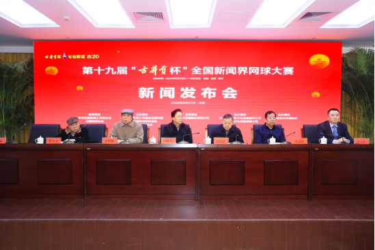 3月27日,第19届“古井贡杯”全国新闻界网球大赛新闻发布会在北京新闻大厦召开,这项新闻界的“大满贯”赛将于5月23日到28日在合肥和亳州举行。届时将有来自全国新闻媒体组成的近30家代表队参加角逐。