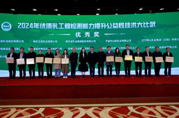 按照2024年中央一号文件关于“完善液态奶标准,规范复原乳标识,促进鲜奶消费”要求,奶业联盟于2024年3月7日至8日对20家优质乳工程实施企业开展检测技术培训和检测能力公益性大比武活动,对14家获得优秀奖的单位进行了表彰。会议举办了战略合作签约仪式,奶业联盟分别与天津海河乳品有限公司就“盐碱地牛奶特征性成分鉴定”、与山东得益乳业股份有限公司就“富锶功能原生牛奶研发”签订了战略合作协议,标志着我国本土鲜奶的特异性品质研发进入新阶段,将进一步促进奶业向品质提升的方向迈进,助推奶业高质量发展。