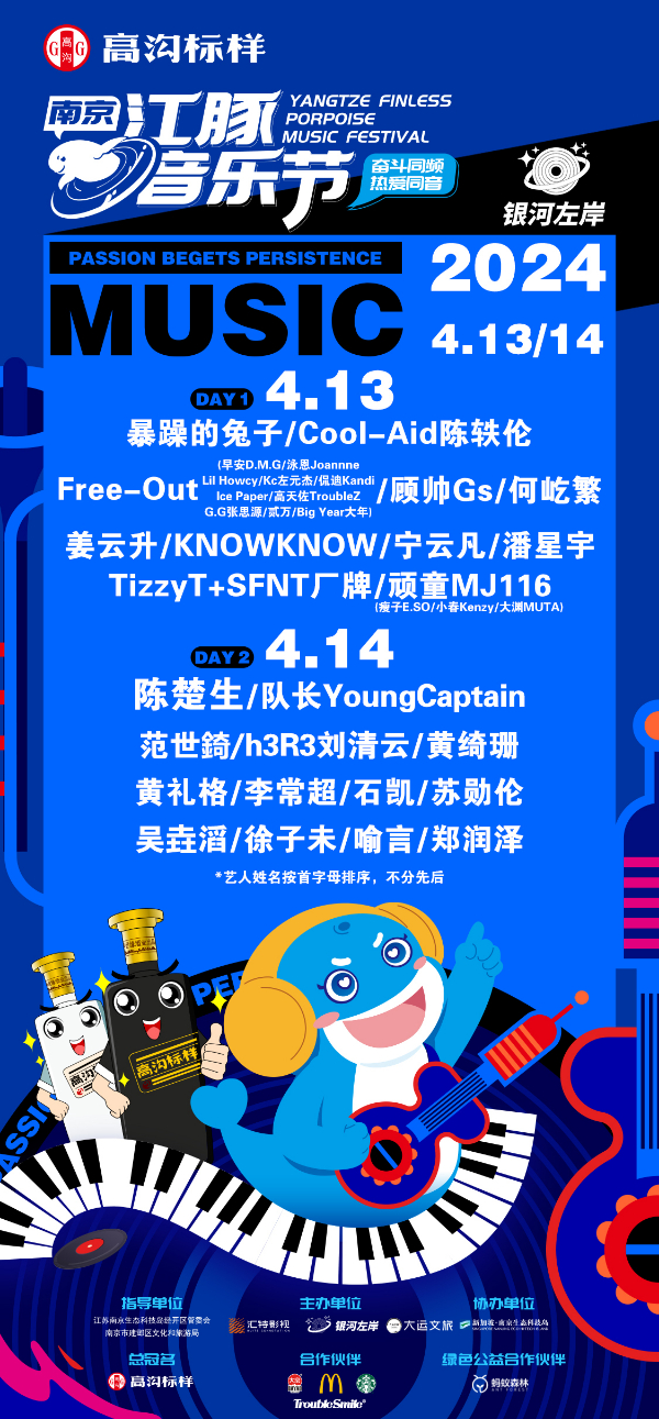 4.13-4.14,由高沟酒冠名赞助的2024南京江豚音乐节将在江心洲生态科技岛热烈开唱!