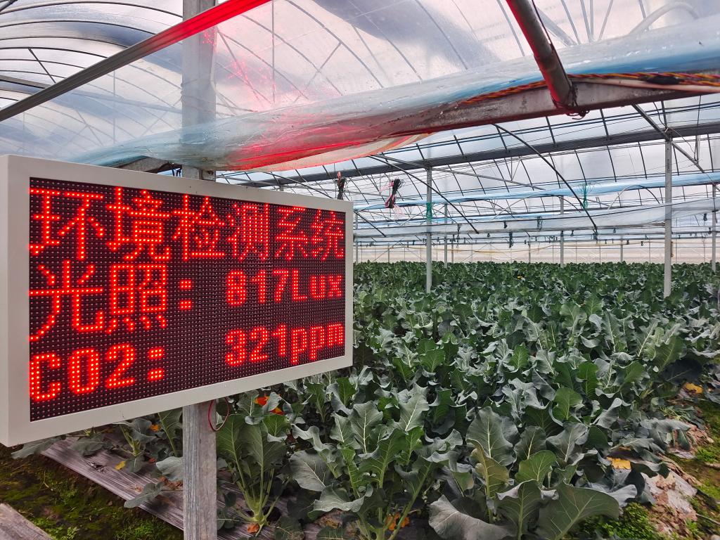 温度、湿度、二氧化碳浓度……彭江波蔬菜基地里的大屏幕上,各种数据一目了然。彭江波说,为了更加科学高效种好菜,他在田里“种”了许多传感器,方便研判数据,及时调整种植管理计划。