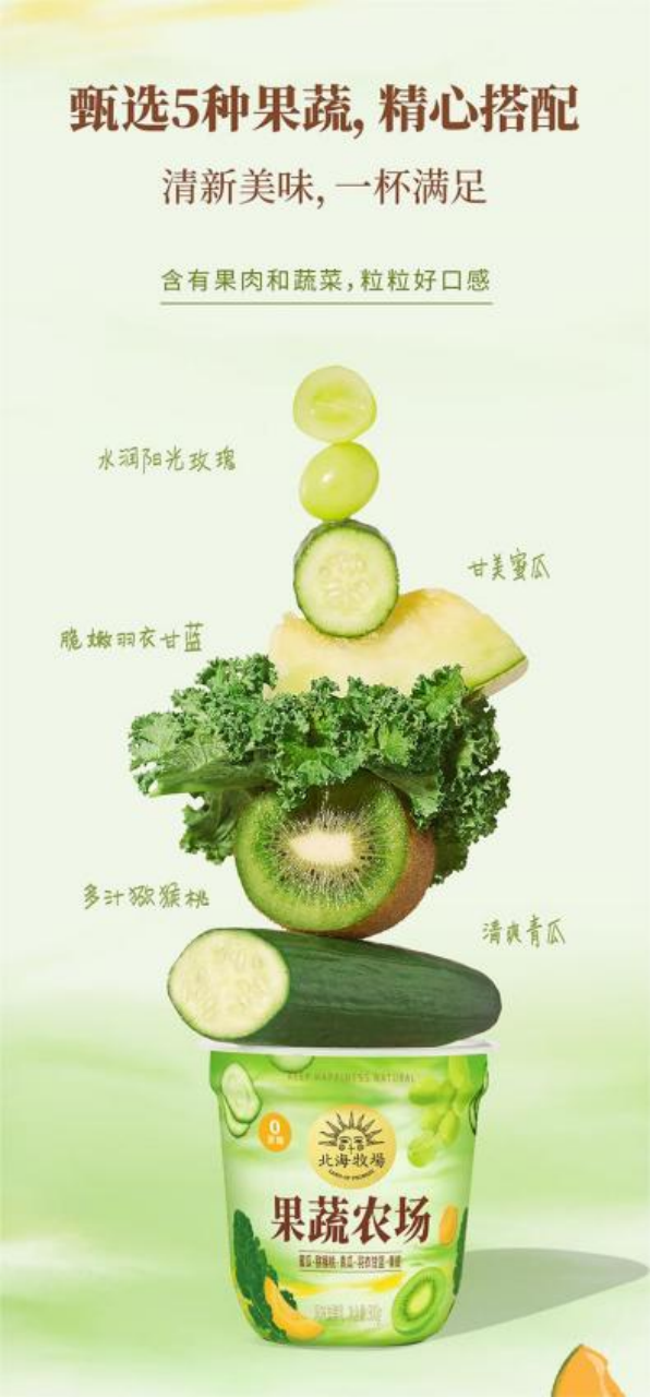 5月15日,北海牧场在全国范围推出了主打“5种果蔬,1杯满足”的果蔬农场系列酸奶。该款酸奶富含真实果肉和蔬菜,配方简单纯净。北海牧场此举,业内认为是其创新能力的持续升级。据悉,该款产品未上市已获得很多消费者关注。