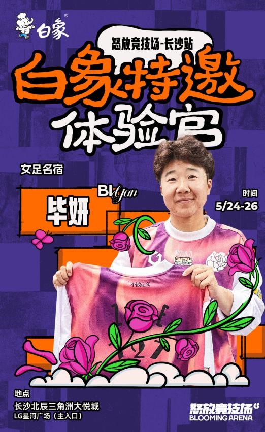 值得一提的是,5月24日- 26日,白象食品还携手“怒放竞技场”在长沙北辰三角洲大悦城共同举办“怒放竞技场·长沙站”街头女子足球赛活动,届时将有“青少组”、“萌新组”、“进阶组”三个组别的球队,进行一场场精彩绝伦的街头足球对决。同时,足球名将范运杰、古雅沙、毕妍也将亲临现场,为参赛选手们加油助威。