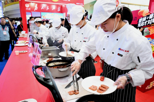 餐饮产品展区展示了红烧狮子头、藤椒猪蹄、黄焖排骨、梅菜扣肉等中华菜肴系列,香卤牛肉、猪耳片、酱香捆肘、椒麻鸡等酱卤熟食,拌面、拌饭、煲仔饭、米线等方便速食,调料综合展区展示了鸡味鲜、猪骨高汤、回锅肉调味酱、炸酱面拌酱等产品,是企业“进家庭 上餐桌”产品战略的成果。团餐产品展区展示了米饭套餐、面条套餐、盖浇饭套餐等品类丰富、营养美味的各种营养餐系列,全力满足学校、医院、机关单位等消费群体“安全、营养、丰富、便捷”的用餐需求。
