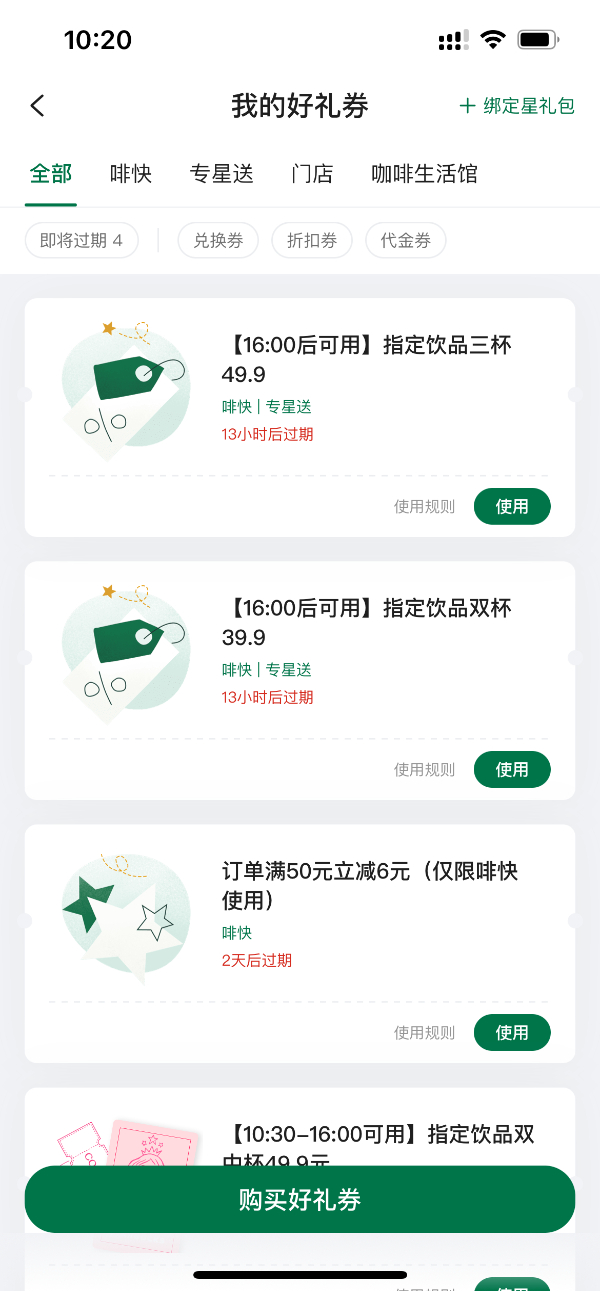 “现在App经常会有优惠券,指定饮品三杯49.9元,或者是指定双杯饮品39.9元。虽然饮品的选择范围有限制,优惠券也只能下午4点以后用,但到了下午犯困时,跟同事一起拼单点咖啡,到手一杯不到20元,很划算。只是优惠券的有效期很短,发放频次也没有其他品牌那么频繁。”黄女士说。