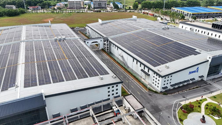 建筑设计:因地制宜,用地集约,利用厂房夹层空间,集中式能源供应,减少传输消耗;车间布局紧凑,产线地块空间高使用率;东方美学与现代钢构建筑结合,大面积长条窗最大限度利用自然光,结合LED照明,降低能源使用;全厂绿化,鲜花四季盛开,园区透水率达30%,有效防止水土流失;