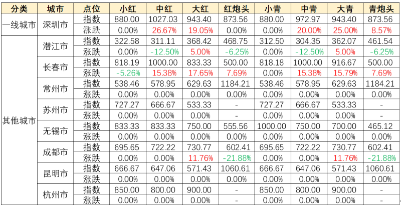 我国主要城市龙虾指数变化趋势(单位:点)