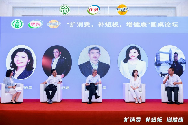 现场,中国社会科学院农村发展研究所研究员刘长全、北京三元食品股份有限公司奶源管理部总经理郑健强、妙可蓝多食品科技股份有限公司品牌中心总经理吴丽圆和南京卫岗乳业有限公司副总裁雒彦参与圆桌会议并讨论。与会嘉宾围绕破解奶类消费困境,以消费者为中心,推动产品创新、聚焦新人群、打造新场景,满足乳品消费多元化需求展开研讨。