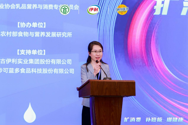 会上,农业农村部食物与营养发展研究所研究员程广燕代表扩大消费课题组做题为《多举措扩大奶类消费需求,助力农业强国和健康中国建设》的主旨报告,她提到促进奶业高质量发展,必须坚持问题导向和系统思维,统筹扩大内需和深化供给侧结构性改革,发挥乳制品在国民营养改善中应有的作用。