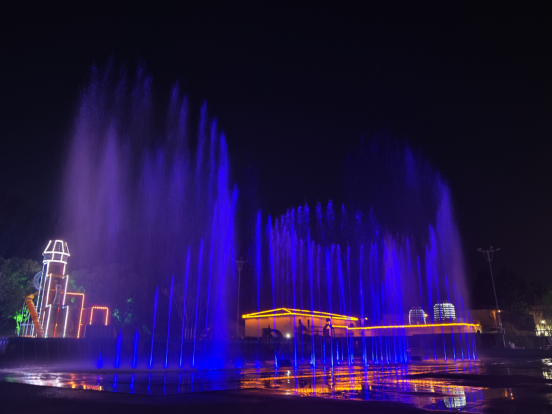 在璀璨的夜空下,音乐喷泉表演开始,现场所有人在享受一场由音乐与水花交织的视觉与听觉盛宴,让小朋友们在艺术中感受生活的美好,留下难忘的家庭记忆。