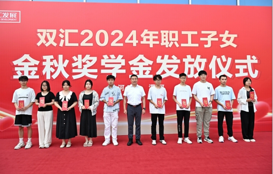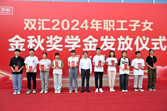 活动现场,双汇发展总裁马相杰,党委书记、工会主席杜俊甫,副总裁周霄为学生代表发放奖学金并合影留念。其他职工子女现场领取奖学金。