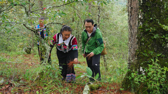 曹辉和当地菌农采摘松茸