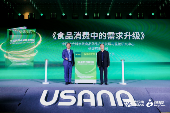 USANA葆婴全球副总裁、中国区总经理王生和中国社会科学院食品药品产业发展与监管研究中心主任张永建联合发布保健绿皮书