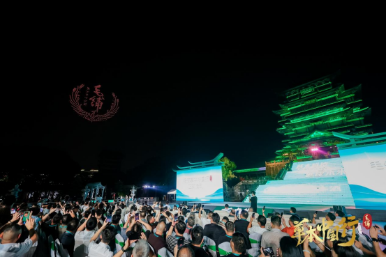 以浩瀚夜空为幕,以璀璨光影为笔,数千架无人机正翩然升空,上演了一场震撼人心的无人机光影秀。星星点点的灯光在空中汇聚成耀眼的光环,它们不仅深刻蕴藏着毛铺的科技创新与健康内涵,也勾勒出毛铺“草本科技 健康未来”的美好愿景。