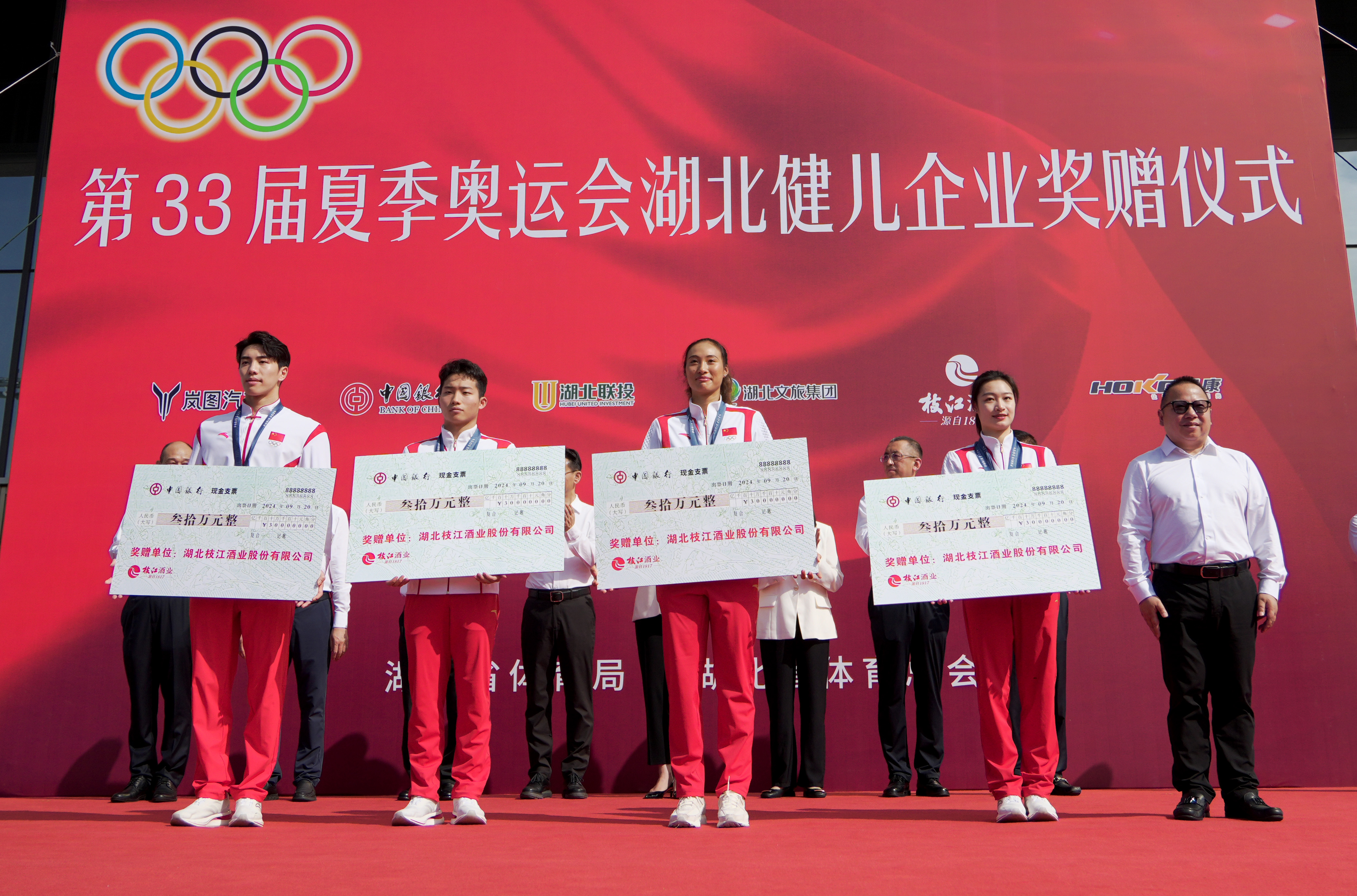 随着2024年巴黎奥运会圆满落幕,湖北籍体育健儿以卓越的表现为国争光,取得辉煌战绩,共斩获4金1银1铜。9月20日,荣耀归来的英雄们载誉返乡,郑钦文、王宗源、昌雅妮、孙佳俊4名奥运冠军,受到了家乡亲人、朋友、粉丝以及众多市民的热烈欢迎。湖北省举行“第33届夏季奥运会湖北健儿企业奖赠仪式”活动,以此表彰奥运健儿凯旋,为家乡、为祖国增光添彩。