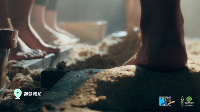制曲、起窖、拌料、蒸馏、入窖,迎驾酿酒要历经69道传统工序,将蒸煮好的粮食与制好的曲混合均匀封入泥池老窖,开始新一轮长达90天的发酵。在酒曲的作用下,窖池中的微生物将变得更加活跃。