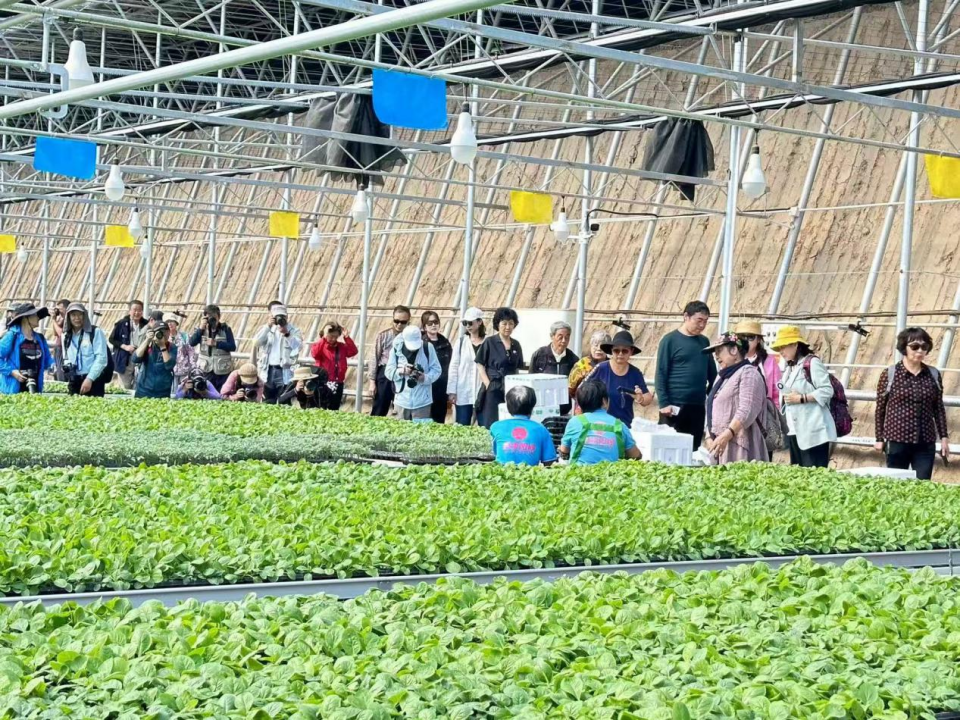 随后,市民们前往四季阳坤农业园,一个集生态农业与科技于一体的蔬菜基地。四季阳坤以其先进的农业技术和生态理念,为市民们展示了现代农业的魅力。在这里,市民们参观了“生态农业科技园”和“鹏程生态园”,并近距离观察和了解各种应季蔬菜的生长状况和种植技术,学习到了不同蔬菜的品种特性、种植要求和营养价值等科普知识,这些知识不仅丰富了他们的农业知识,也增强了他们对健康饮食的认识。最令人兴奋的是,市民们亲自下田,采摘了包括大黄瓜、奶黄瓜、水果芥兰、圆椒、皱皮椒、螺丝椒、圆茄、糯玉米、蜜薯、韭菜、芹菜、茼蒿、甜杆等在内的多种杂粮果蔬,亲手体验了丰收的喜悦。