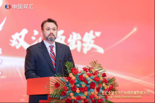 随后,双汇全球肉类产业高质量发展大会在双汇总部大楼报告厅举行,双汇发展总裁马相杰主持会议。
