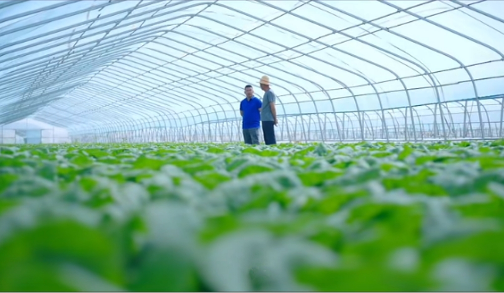 新洋丰农艺师李蒙察看阳光玫瑰长势