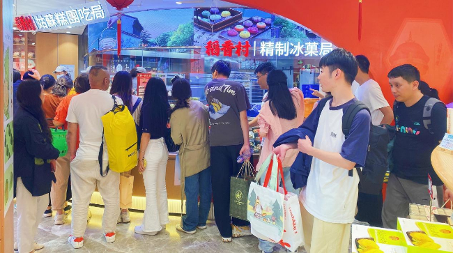 在成都,稻香村位于昭觉寺动漫城的主题新店于国庆节当日正式开业,吸引了大量年轻消费者。新店所在的天府国际动漫城,汇聚众多动漫IP,是年轻人新聚集地。充满青春气息的门店设计,将成都特有的熊猫元素融入其中,另外还新增各类时尚饮品,让老字号稻香村焕发出新的品牌活力。很多消费者称赞,全新的门店形象令人耳目一新,完全打破了中式糕点的传统门店印象。据门店工作人员介绍,国庆期间客流络绎不绝,店内除了数十种中式糕点,还特别推出成都和熊猫主题的特色城市伴手礼盒,在国庆假期成为热销产品。很多年轻人在朋友圈、抖音、小红书等社交平台看到新店开业消息后纷纷前来打卡。