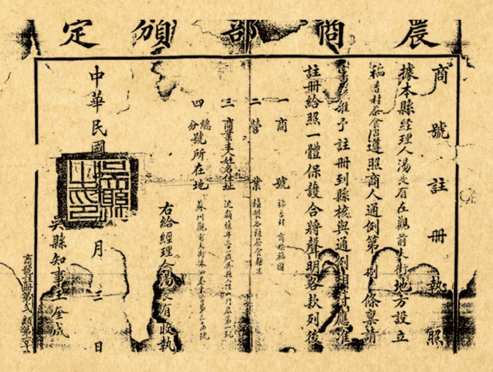 民国时期稻香村商号注册证