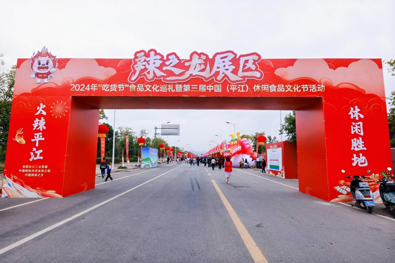 10月27日至29日,2024 年 “吃货节” 食品文化巡礼暨第三届中国(平江)休闲食品文化节在湖南平江举行。作为活动的第一站,“辣之龙”展览(屈子路沿江风光带)于28日上午开展,有超过100家企业展位参展,展示了各种辣条、鱼仔、酱干等平江休闲食品,让人们充分了解平江休闲食品的丰富种类和独特风味。展览首日,吸引了来自全国各地近300名嘉宾、企业家和观众观展。