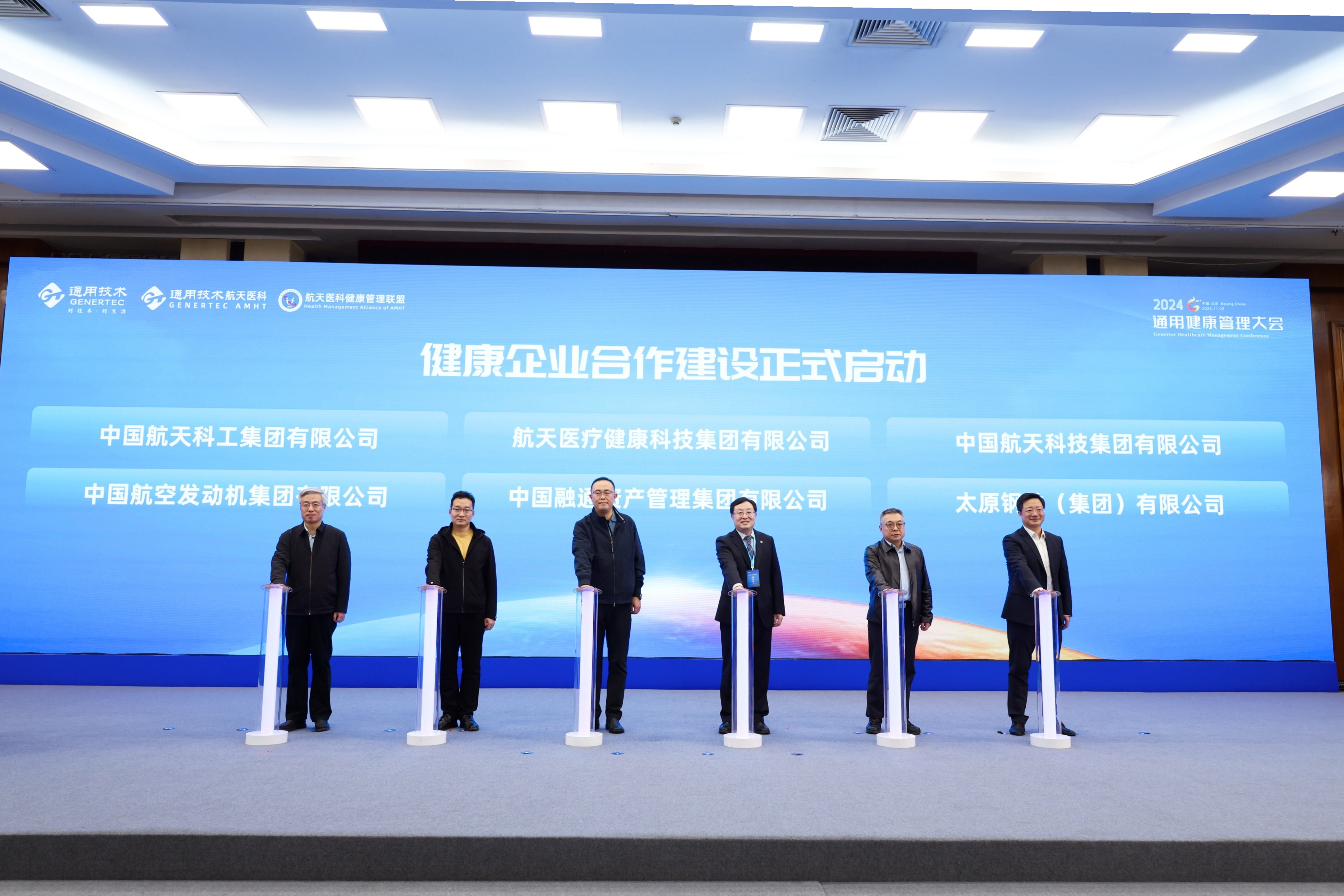 通用技术航天医科与航天科工集团、航天科技集团、中国融通集团、中国航发、太原钢铁集团5家央国企共同携手启动健康企业合作建设。