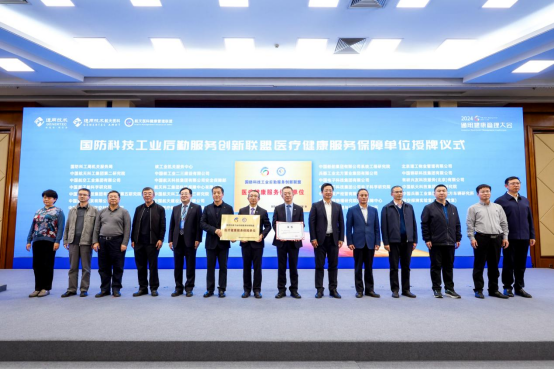 国防科技工业后勤服务创新联盟理事长宫殿荣、联盟常务副理事长高国军,向通用技术航天医科航天中心医院颁授“国防科技工业后勤服务创新联盟——医疗健康服务保障单位”牌匾及证书。联盟的部分成员单位领导和代表共同见证授牌仪式。